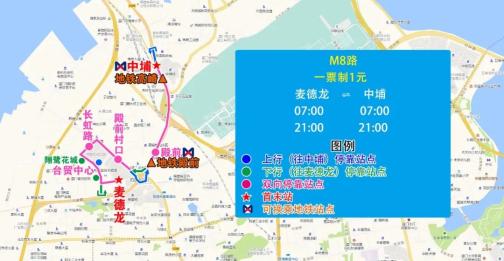 (二)停靠站点:麦德龙、台贸中心、翔鹭花城(往麦德龙)、长虹路、殿前村口、殿前、中埔。