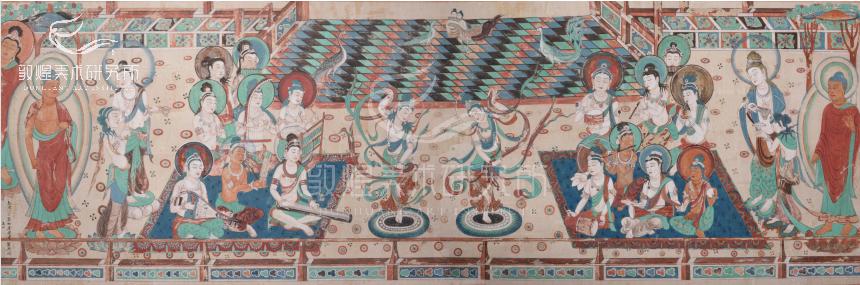 敦煌艺术延绵千年,其中,也伴随着中国古代音乐艺术的发展。在经典敦煌艺术作品中,不乏乐舞元素的出现。安好、祥和、喜乐是他们的代名词,极乐净土的美好展现也依托于此。伴随着不同的时代背景,乐舞元素的发展也成为了时代缩影,因此盛唐时期的乐舞发展尤其兴盛。