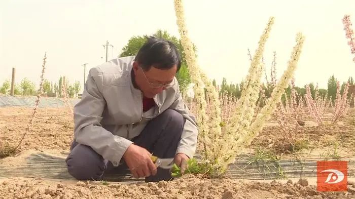 近日,记者来到王凯程的钙果种植基地,只见一片花海,粉色和白色的花朵开满枝条,让原本不太高的钙果苗显得更加丰满。王凯程正在地里修剪钙果枝条,他告诉记者,2019年一个偶然的机会,他了解到钙果的神奇功效,于是多方考察,把钙果引进敦煌种植。