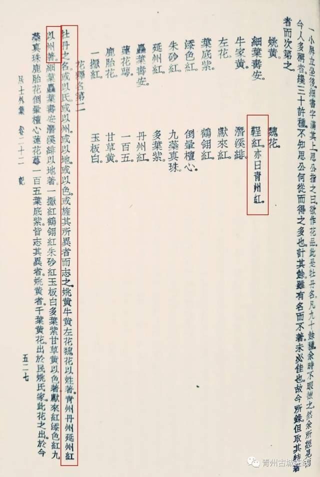文中的“鞓红”牡丹,又名“青州红”。鞓念作“厅”,即皮腰带。古人的皮腰带均为深红色。