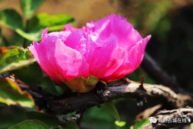 青州古城景区偶园内四株鞓红、一株后鞓红年年春日里开出了最美的“青州红”。一顾倾城,一瞥惊鸿,像一幅水墨画,渲染着青州文化。