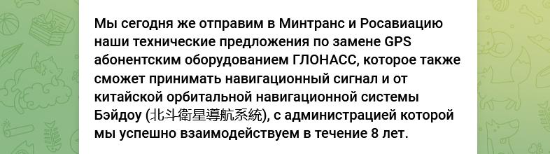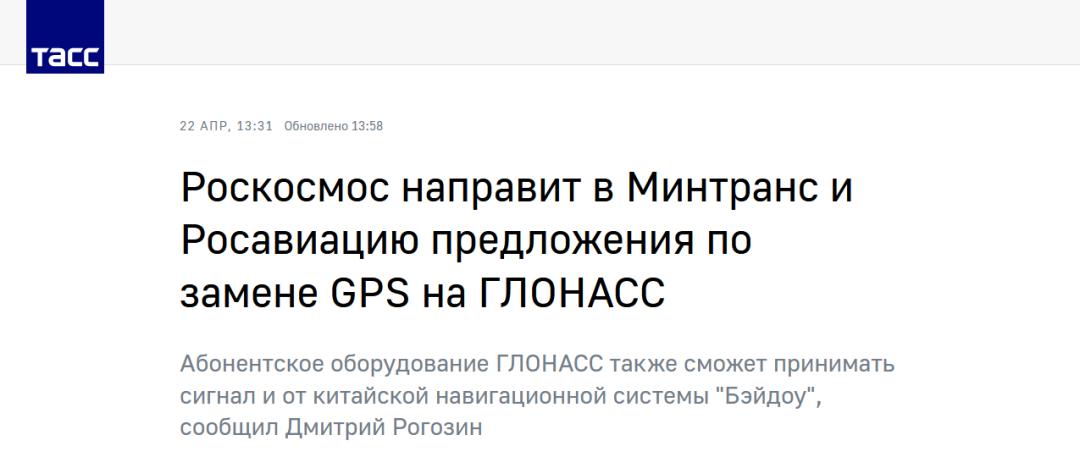 与此同时,罗戈津也跟着这则消息的口风,重提改用格洛纳斯系统一事。22日他在Telegram上发文,预告称俄罗斯国家航天集团公司将于当日向俄交通部和联邦航空运输署建议用格洛纳斯导航系统替代GPS系统。