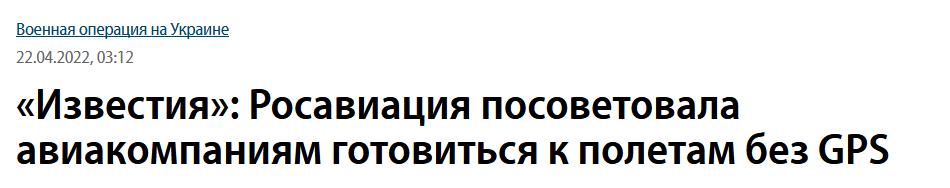 一个月后,昨天(4月22日)俄罗斯联邦航空运输署也称美国有可能拒绝为俄国内航空公司提供GPS导航服务,因此建议航空公司做好在GPS系统支持缺失情况下飞行的准备。