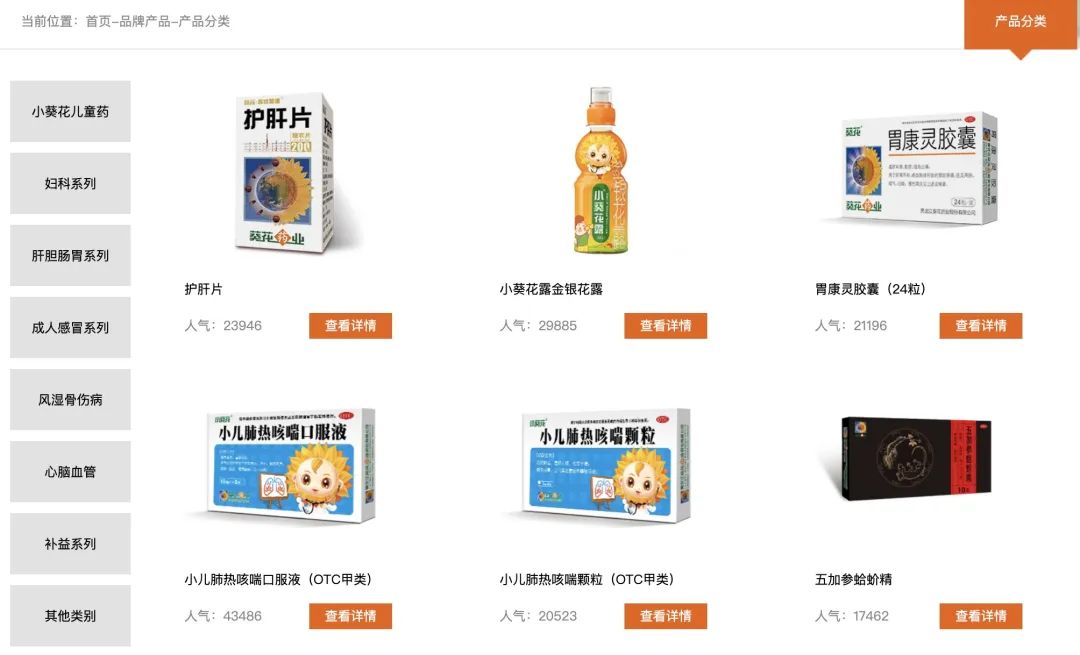葵花药业是以生产中成药为主导,以化学药、生物药和健康养生品为两翼,集药品研发、制造与营销为一体的大型品牌医药集团企业。葵花药业产品众多,尤以儿童用药“小葵花”品牌最为知名。