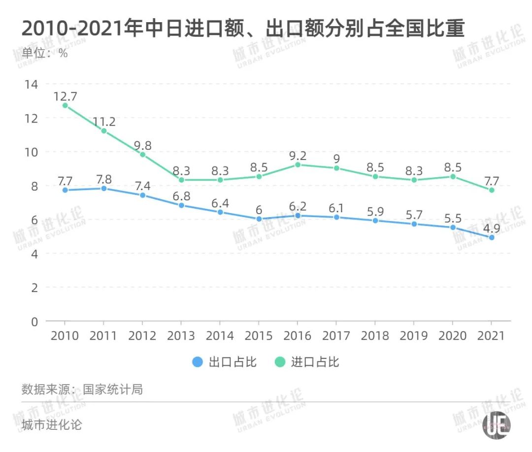 这十余年间,东盟成为我国排名第一的进出口贸易伙伴,到2021年,日本次于东盟、欧盟和美国,排名第四。