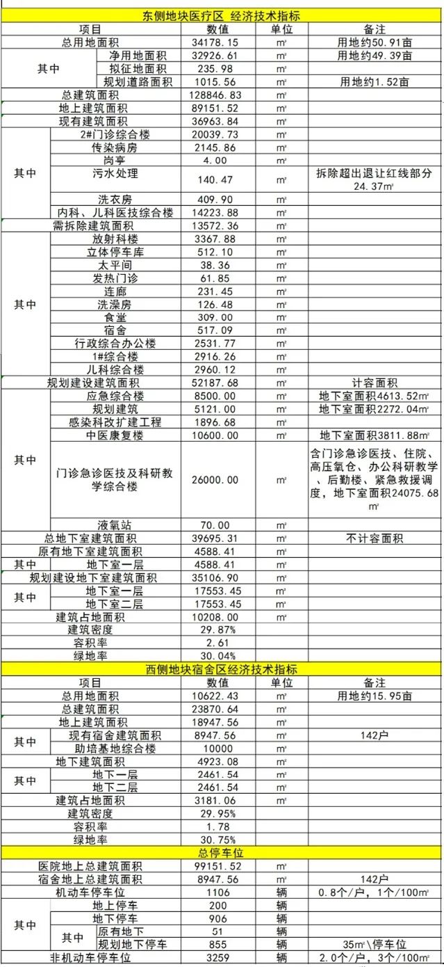 柳江区人民医院(网络图片)东侧地块柳江区人民医院规划总用地面积增加235.98㎡的前提下进行调整,总建筑面积由50673.27㎡调整为128846.83㎡,增加78173.56㎡;其中既有建筑面积由35818.94㎡调整为36963.84㎡,增加1144.90㎡(因医疗需求未对现状建筑进行拆除,保留原规划建筑内科、儿科医技综合楼,故面积增加);规划建筑面积由17157.91㎡调整为52187.68㎡(现增建应急综合楼、中医康复楼、液氧站、感染科改扩建工程、门诊急诊医技及科技教学综合楼、规划建筑,故本次面积增加),增加35029.77㎡。污水处理建筑面积由164.84㎡调整为140.47㎡。