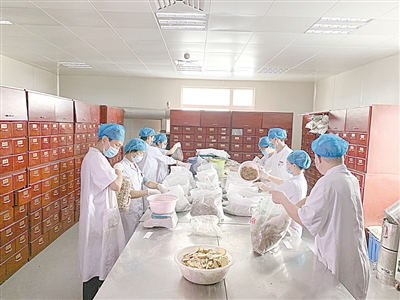 上午10时,在市中医院的中药调剂室,只见药剂师熟练抓药、称重;煎药室里,机器连轴转,工作人员争分夺秒,一刻不停煎药、分装,一派忙碌有序景象。