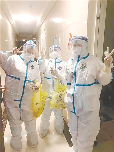 这是一个令人动容的瞬间镜头。市中医院一个个“大白”,骑着电动车连夜赶往核酸检测一线;天还没有亮,她们先挨家挨户上门为重点人员检测,然后顾不上休息,匆匆赶往指定社区、学校开展检测……