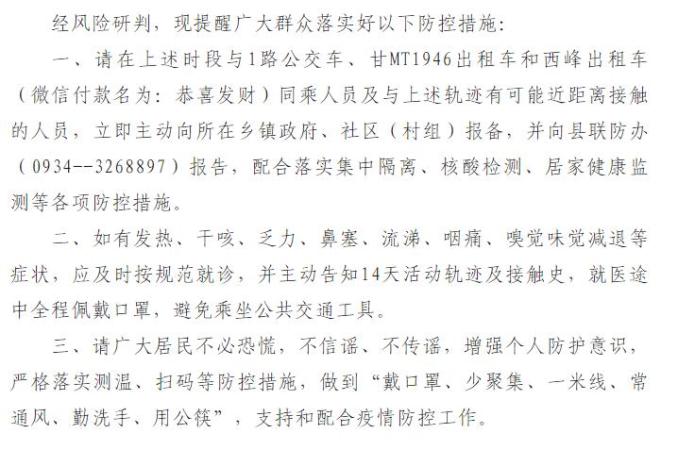 庆阳市庆城县疫情防控办关于紧急寻找次密切接触者的通告