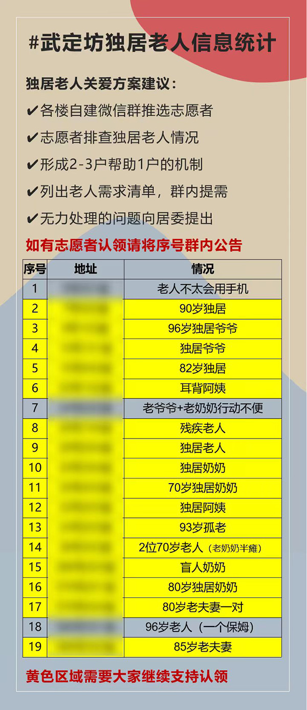 武定坊独居老人初期信息统计 本文图片均为 受访者 供图