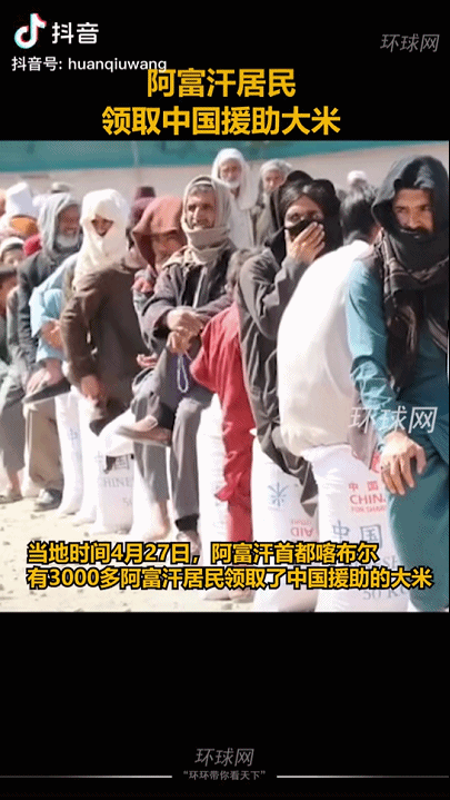 当地时间4月27日,阿富汗首都喀布尔有3000多阿富汗居民领取了中国援助的大米。阿富汗官员表示,本次收到的大米已开始在全国34个省份分发。
