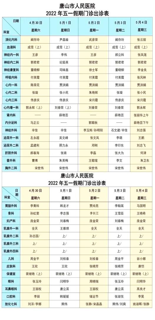 为更好地满足广大患者就医需求,唐山市人民医院五一劳动节假期各专业门诊正常开诊!(来源:唐山市人民医院医疗集团)(向上滑动查看)