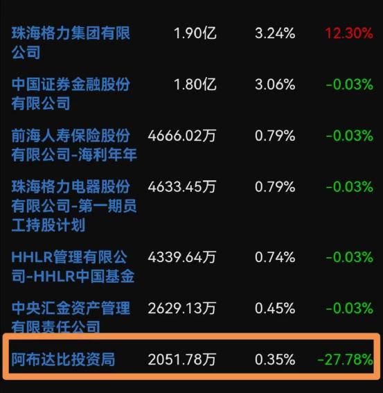 格力则遭受到了阿布达比投资局的减持,减持数量约900万股,减持比例27%。