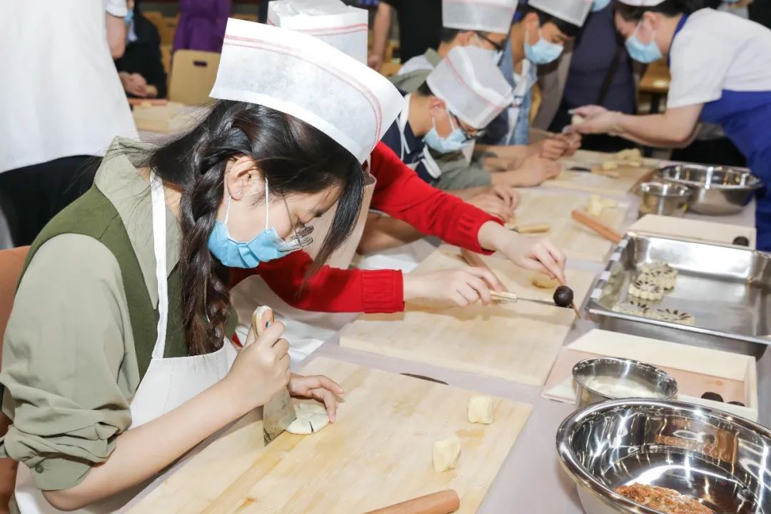 郭号霞今年43岁,是一名中共党员,于1994年参加工作,1998年入职北航总务处食堂科,2009年至2013年于教工食堂负责烤、烙、蒸等类型的主食制作,2013年至今负责食堂点心制作,现为饮食服务中心教工食堂面点厨师,劳动教育课堂小组主讲师。同学们热情高涨
