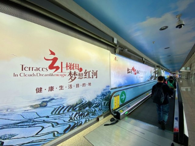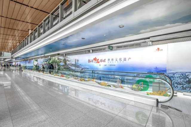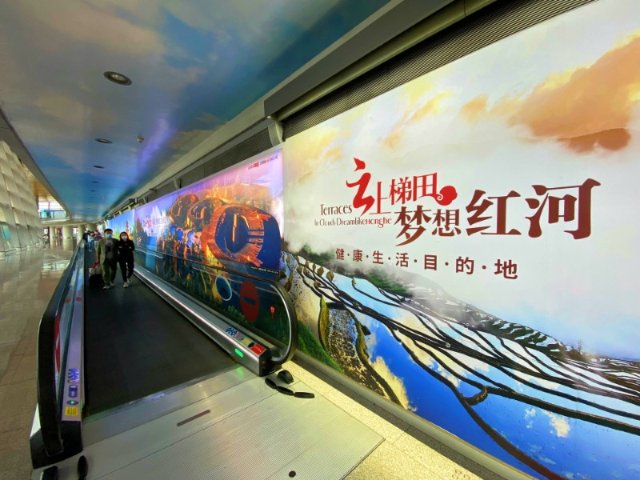 据介绍,此次红河州文化和旅游局精心打造的“创意宣传长廊”,是昆明长水国际机场到达区单体面积最大、旅客停留时间最长、信息传达效率最高,集合声、光、画等多种展现形式为一体的特色媒体点位,是红河文旅基于交通枢纽平台,对外宣传的一次新尝试、新探索。