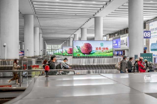 除了在机场核心到达区的“创意宣传长廊”外,结合即将到来的“石屏杨梅季”以及“建水紫陶文化深度游”等主题活动,红河州文化和旅游局还利用机场安检区的巨型LED大屏、廊桥登机口处的刷屏机以及行李提取大厅的转盘LED大屏等动态平台,进行了重点突出的专题宣传。该几处点位有针对性地对机场出发、到达旅客实现了全区域、全场景、全客流的完全覆盖,以空间、场景的延伸突显氛围感,打造沉浸式的感官体验,以此来激活旅客对美景、美食、美好旅程的向往之心。