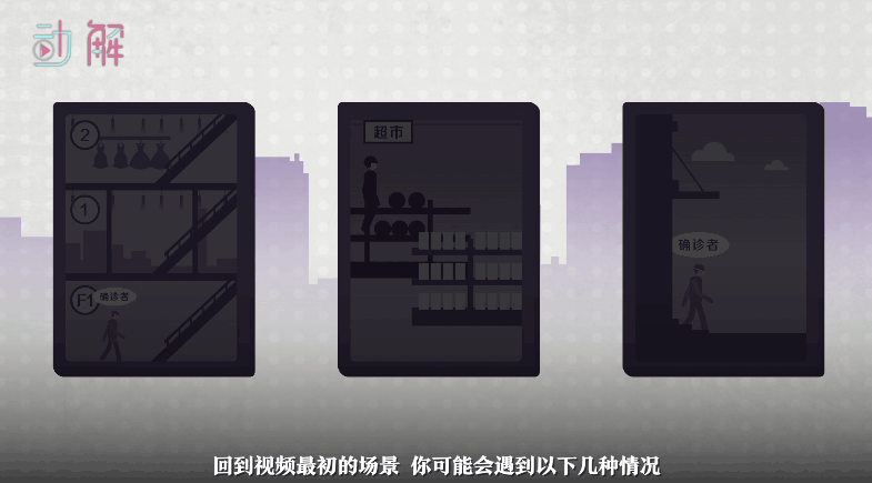 回到视频最初的场景,你可能会遇到以下几种情况:1、确诊者在负一楼的超市,而你一直在同商场其它楼层;