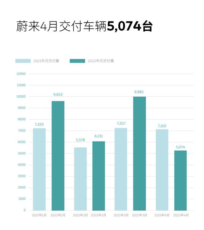 蔚来披露的数据显示,4月,公司交付新车5074辆,同比下滑28.56%,环比下滑49.18%。其中,蔚来ET74月交付693辆。