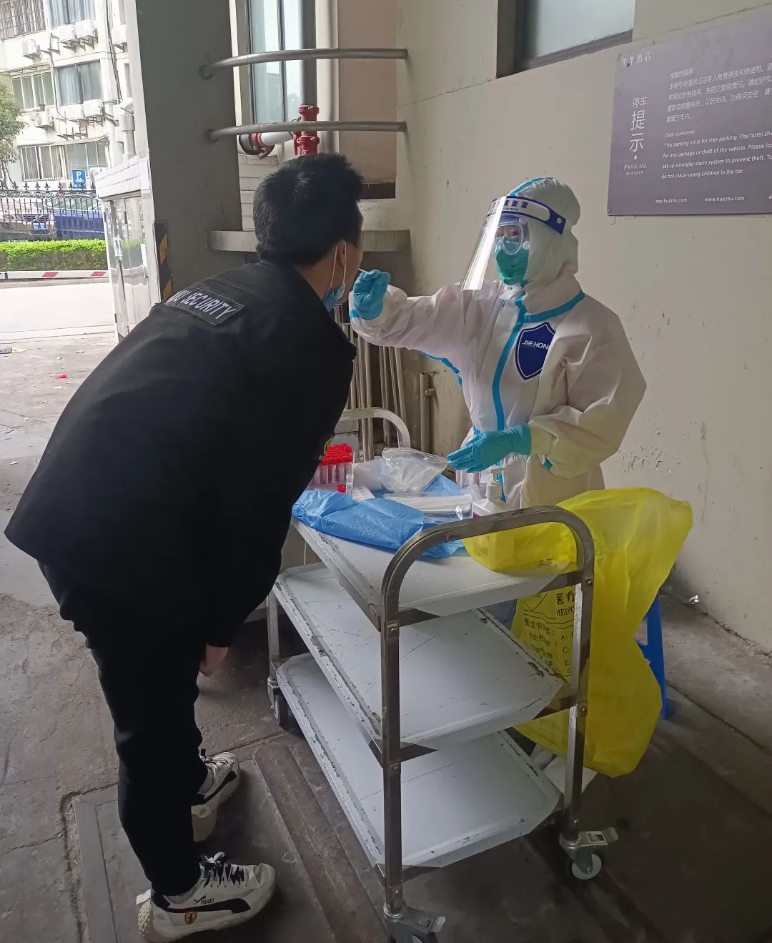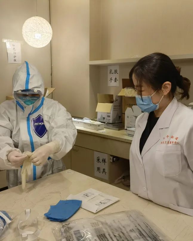 此外,组员们还要对酒店工作人员的防护知识和技能进行培训考核,同时对他们进行每天1次的核酸采样和2次抗原检测。