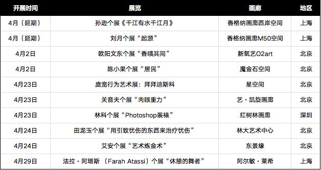 本月,共有来自北京、上海、深圳等地的10个画廊展览入选4月“画廊影响力榜单”。
