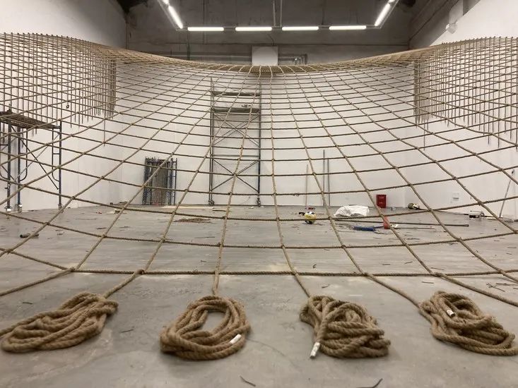 此次展览与最早刘月的个展面貌不同。继2019年的“体积”项目之后,他再次在锅炉房内进行长达一个月的搭建、编织、推倒。这次展览他将以“刘月”的方式凝固住流动的时间。
