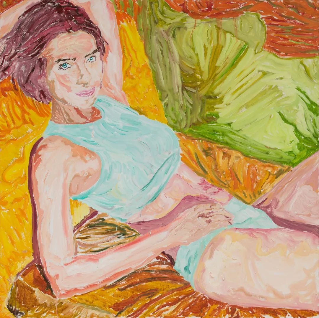 陈小果,居民-沙发,2021,布面油画,168×168cm,图片由艺术家及魔金石空间提供
