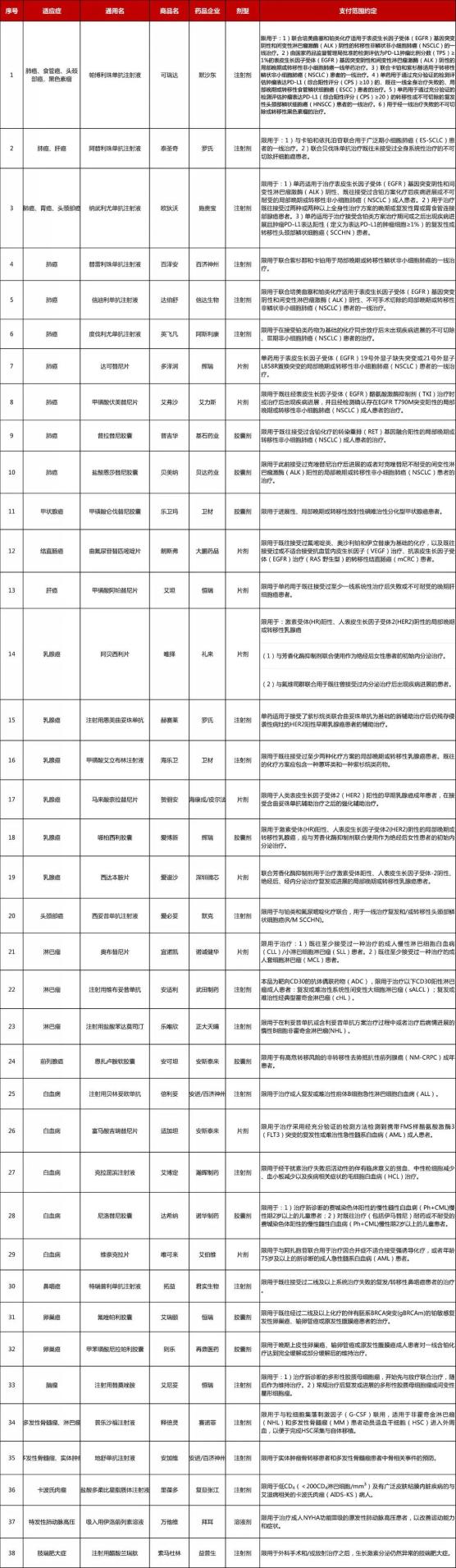 特药目录扩充至38种,支付适用范围增加至48个适应症。增加了因意外原因发生的符合保险责任约定范围的费用报销。