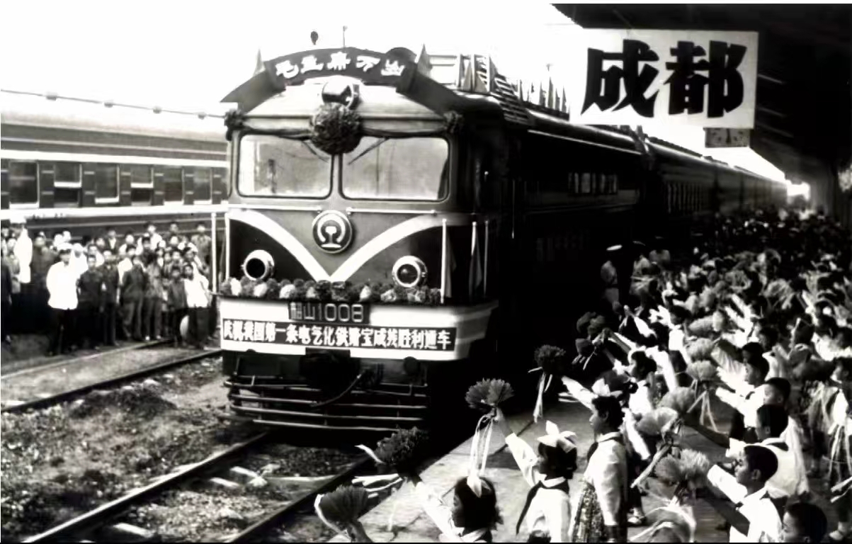 1975年7月1日,全长676公里的宝成铁路全线开通运营,中国第一条干线电气化铁路诞生了! 这是中国主要依靠自己的力量建成的第一条干线电气化铁路,是中国铁路牵引动力开始向现代化迈进的一个重要标志。人民日报发表长篇通讯《钢铁蜀道添翼飞》,高度赞扬电气化人艰苦奋斗、无私奉献的崇高精神。
