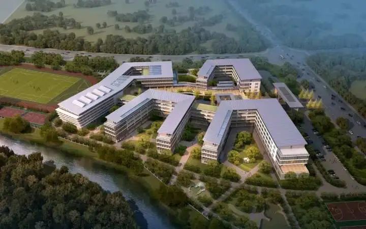 学校鸟瞰图2022年秋季,湖州五中教育集团仁北校区将正式招生启用。学校位于湖州仁皇山区块内,东临青铜路,南邻金田路,西为规划河道以及规划住宅用地,北临同心路,是一所建设规模54个教学班的公办学校,总用地面积105.8亩,总建筑面积67657平方米。