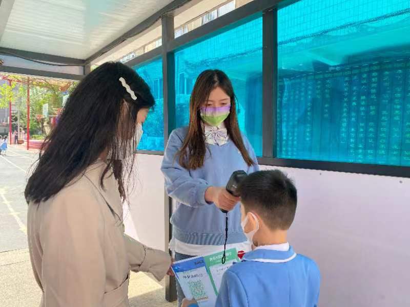 9号上午孟丽校长携全体教职工佩戴口罩,在校门口迎接后小河学子的归来,扫码、测温、验证资料各项工作有序开展。全体领导干部和教师在自己的岗位上各司其职、有条不紊地进行指挥,现场安静而迅速。学生进入到班级之后,班主任和跟班教师清点人数,开始一对一面询工作,班主任老师对孩子们进行心理疏导,鼓励同学们携手并进,共克时艰!