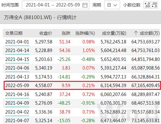 截至5月9日收盘,上证指数涨0.09%报收于3004.14点;深成指跌0.41%报收于10765.63点;创业板指跌0.75%报收于2228.07点,万得全A总成交6717亿元。
