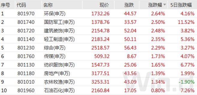 // 行业板块多数走强 //5月9日,由于A股市场呈现出震荡行情,行业板块多数上涨。其中,环保、国防军工、建筑装饰、轻工制造、综合等多个板块涨幅超过2%。
