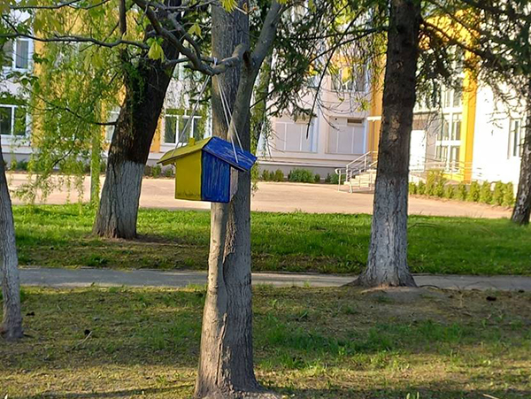 乌克兰西部城市文尼察,一个鸟窝被涂成了乌克兰国旗的颜色。米哈伊尔供图