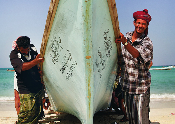位于岛上最西端的苏阿比(Shouab)海滩只能经水路到达,这一世外桃源般的存在刷新了我们对天堂的想象。我们乘渔船从格兰夏码头出 发,迎着汹涌的海面一路劈波斩浪,那些令人心惊胆战的悬崖绝壁却是 索科特拉鸬鹚的筑巢栖身之所。半小时后,渔船拐进一泓水湾,顿时风平浪静了。海水澄蓝碧亮,沙床清晰可见,五彩斑斓的鱼儿倏忽游过,海鸟耐心地立在岩礁上紧盯水面,随时准备美餐一顿。