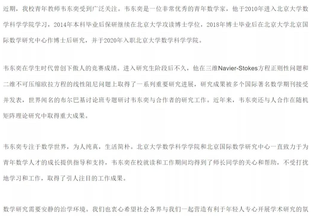 所幸,北大及时出面,回应韦东奕走红的现象,北大称:青年学者需要安静的治学环境。