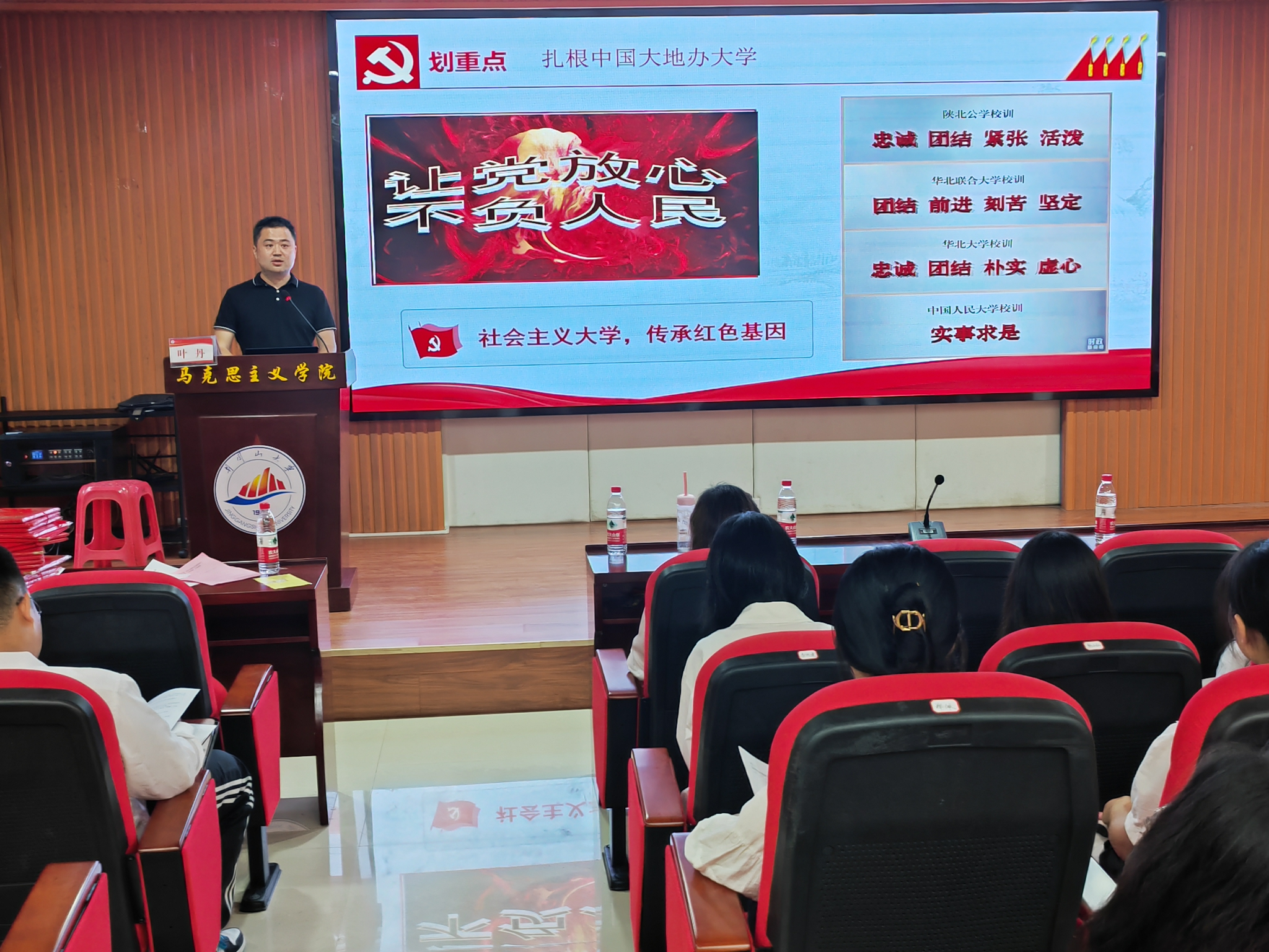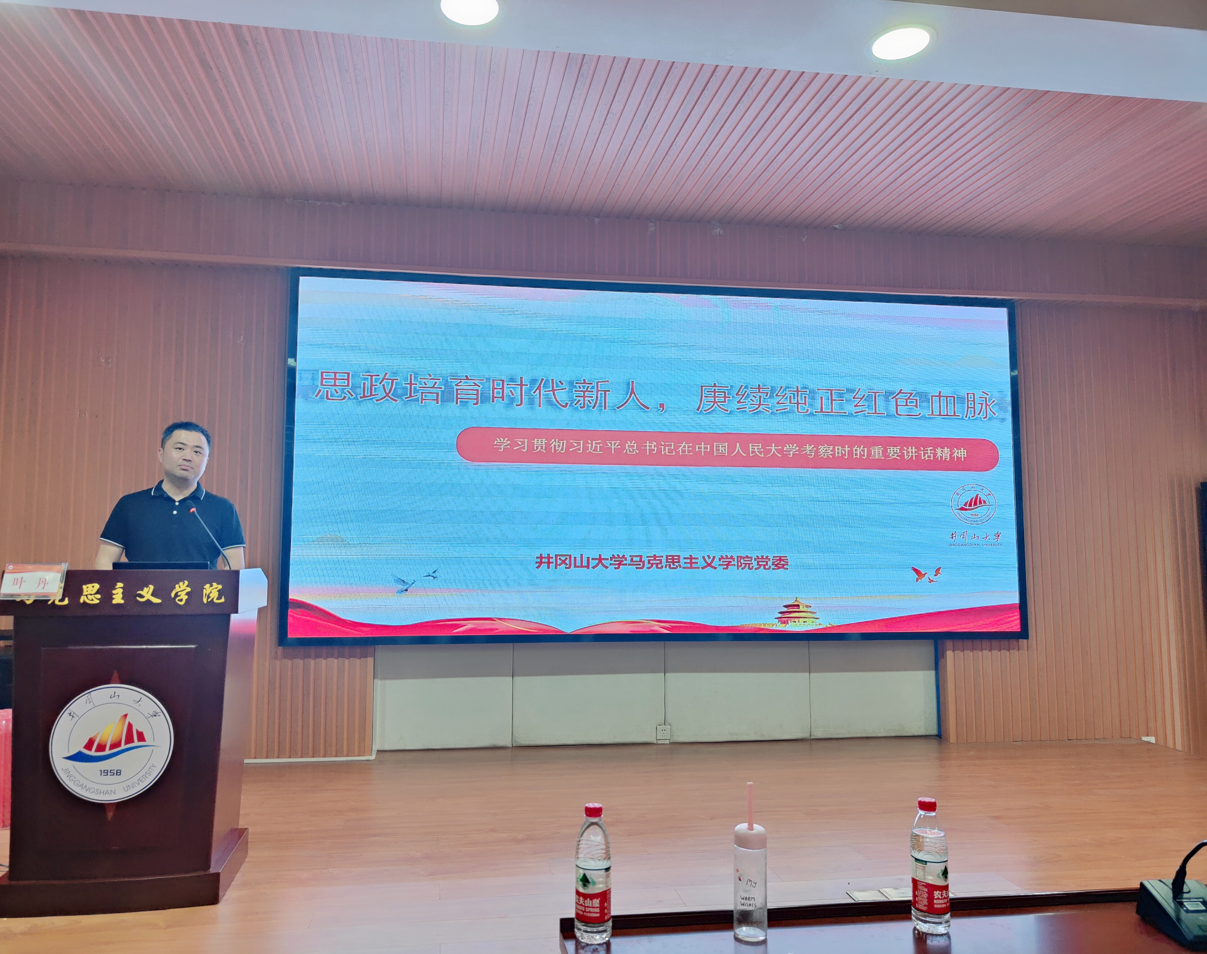 为进一步促进井冈山大学马克思主义学院学生领会和贯彻习近平总书记在中国人民大学考察调研座谈会上的讲话精神,5月6日下午,学院党委书记叶丹在1栋103学术报告厅为学院第十期青马班学员带来了一堂题为《思政培育时代新人,庚续纯正红色血脉》的精彩授课,学院青马班全体学员、各团学骨干与会聆听。