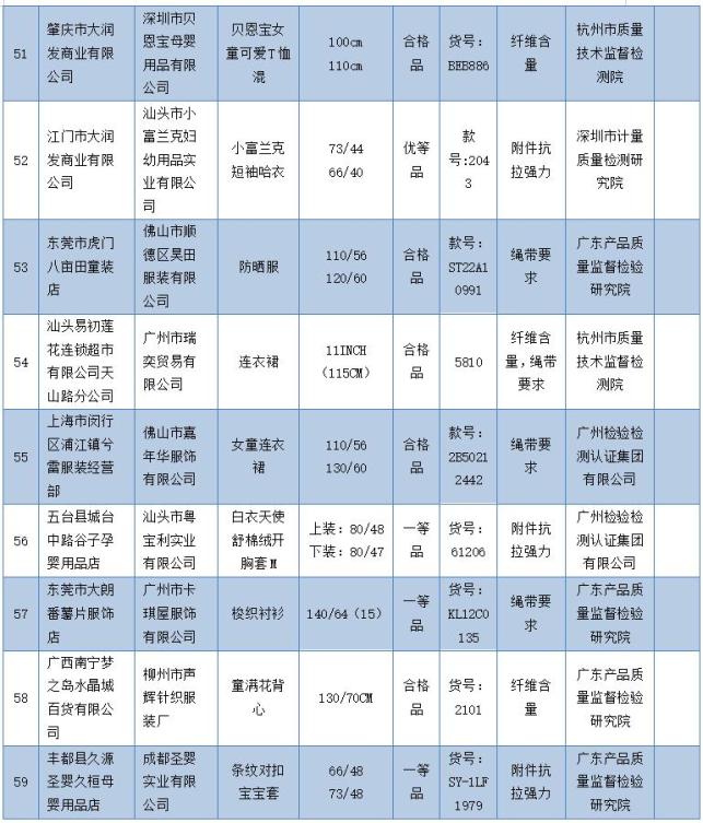 原标题:《“嘟啦啦”“比比乐”等59批次童装不合格!》