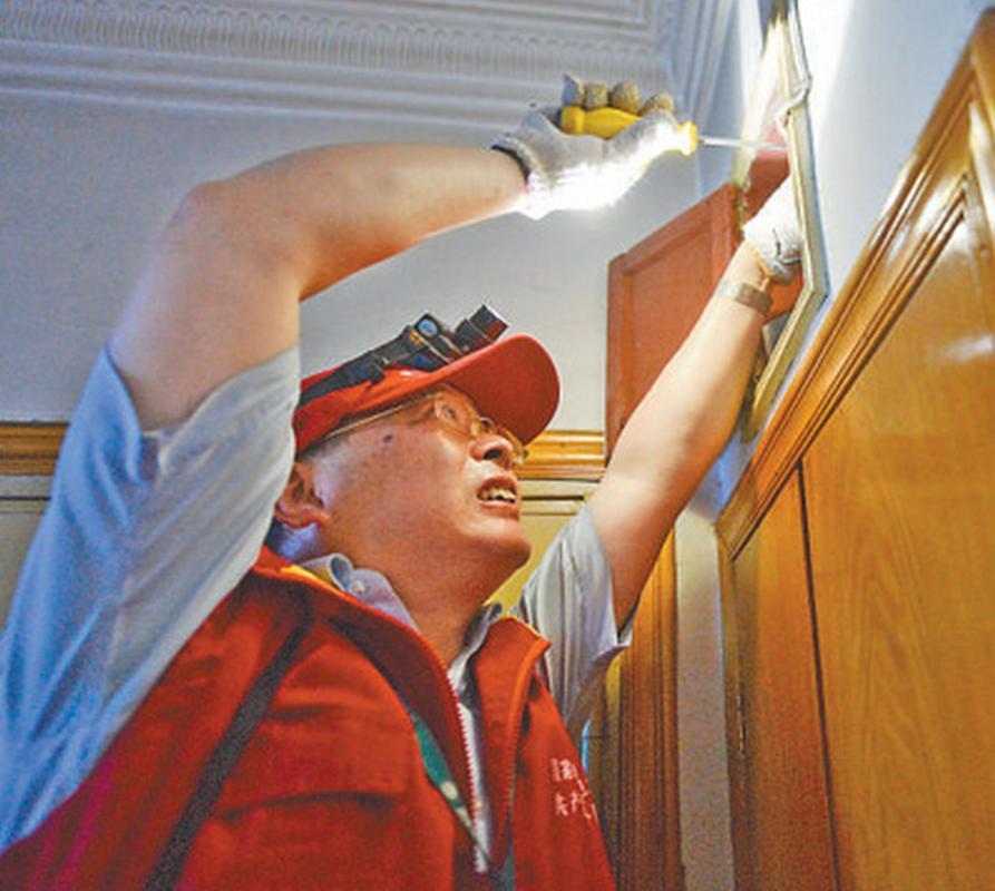 ▲钱海军和志愿者一起为社区空巢老人检修室内电气线路安全并维修小家电。有人问钱海军,这个社会需要帮助的老年人那么多,你哪里帮得过来?