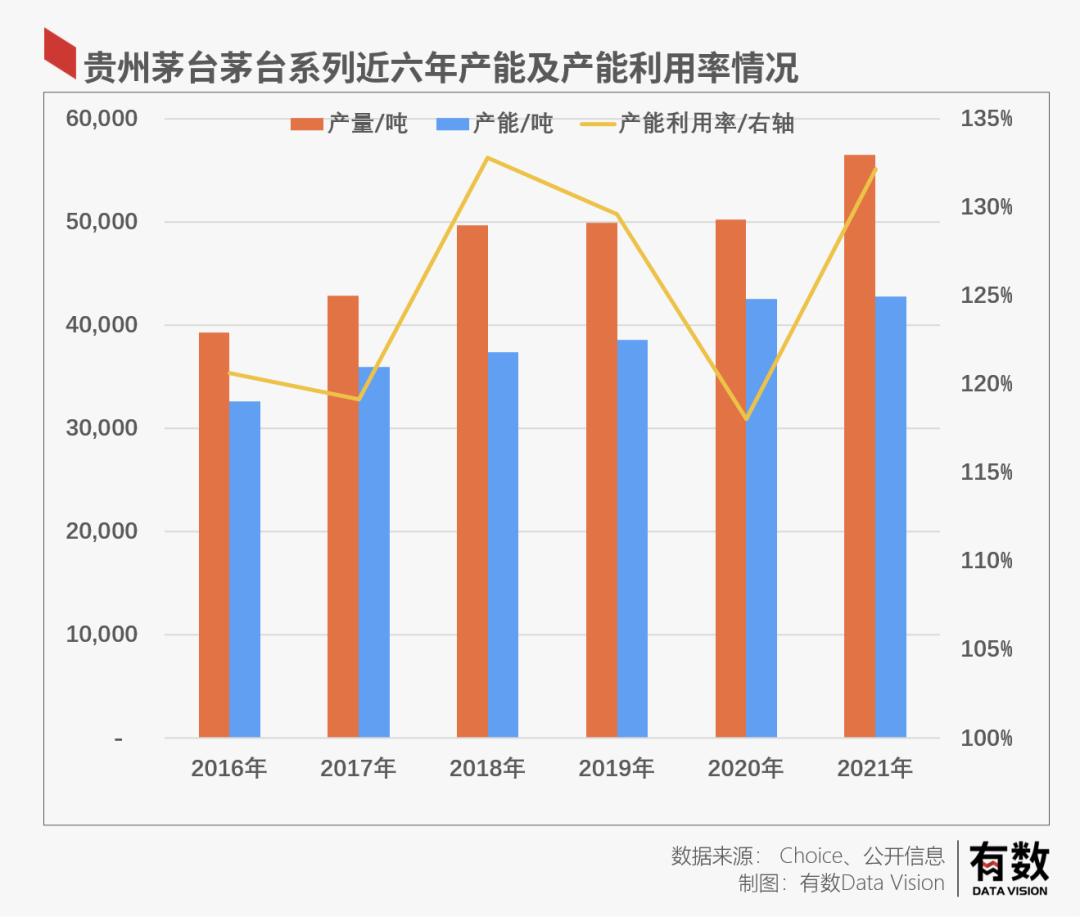 虽然,最近几年茅台的产能每年都在提升,以及产能利用率几乎每年都维持在120%以上。但是,受制于茅台本身的酿造工艺之复杂,从酿造到实际可以出售,起码需要五年时间,因此茅台实际可供出售的产能实际上是取决于五年前的产量(2016-2017年)。