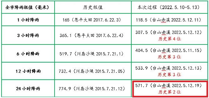 台山赤溪11日19时至12日19时,累积雨量571.7毫米,跻身江门日雨量历史第二位(超过前第二位记录:上川岛322.9毫米,出现在2003年06月10日20时至11日20时)。