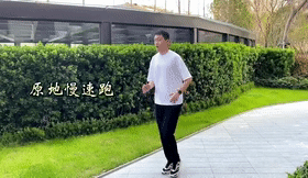 动作要领:慢速原地抬腿,脚步落地轻盈,手臂协调摆臂。锻炼目的:促使机体为接下来的锻炼做好准备。