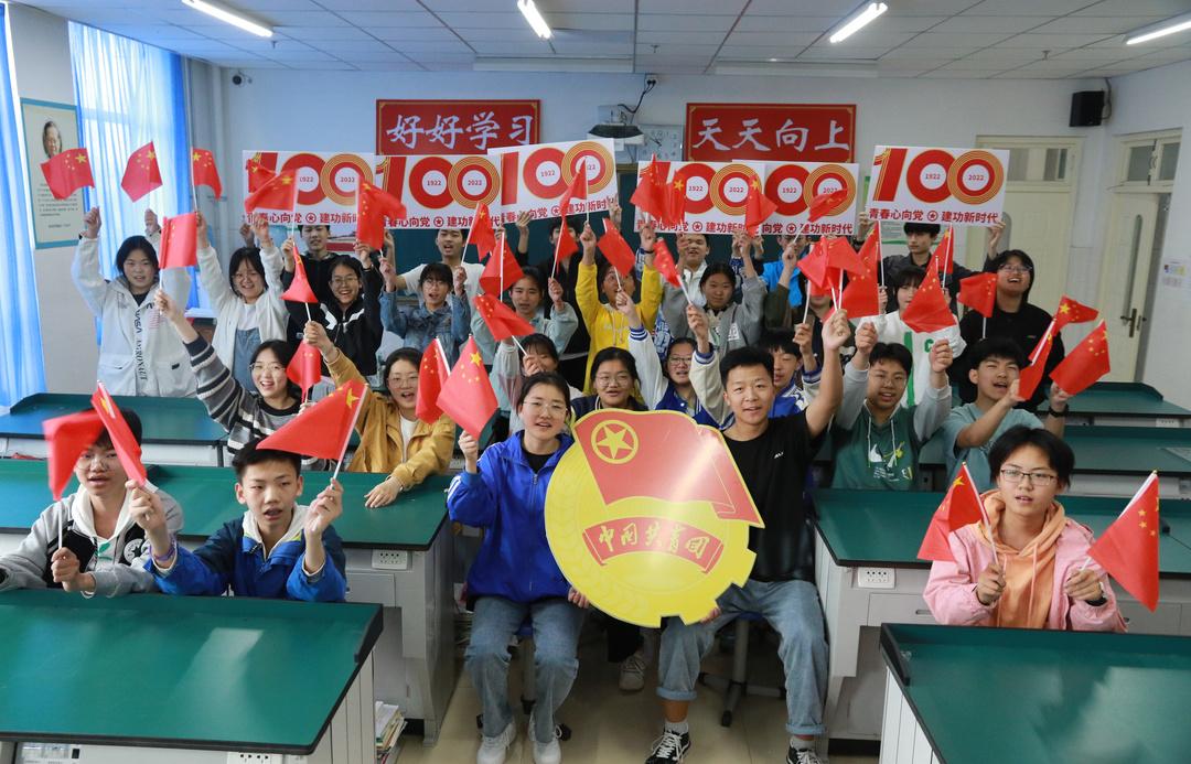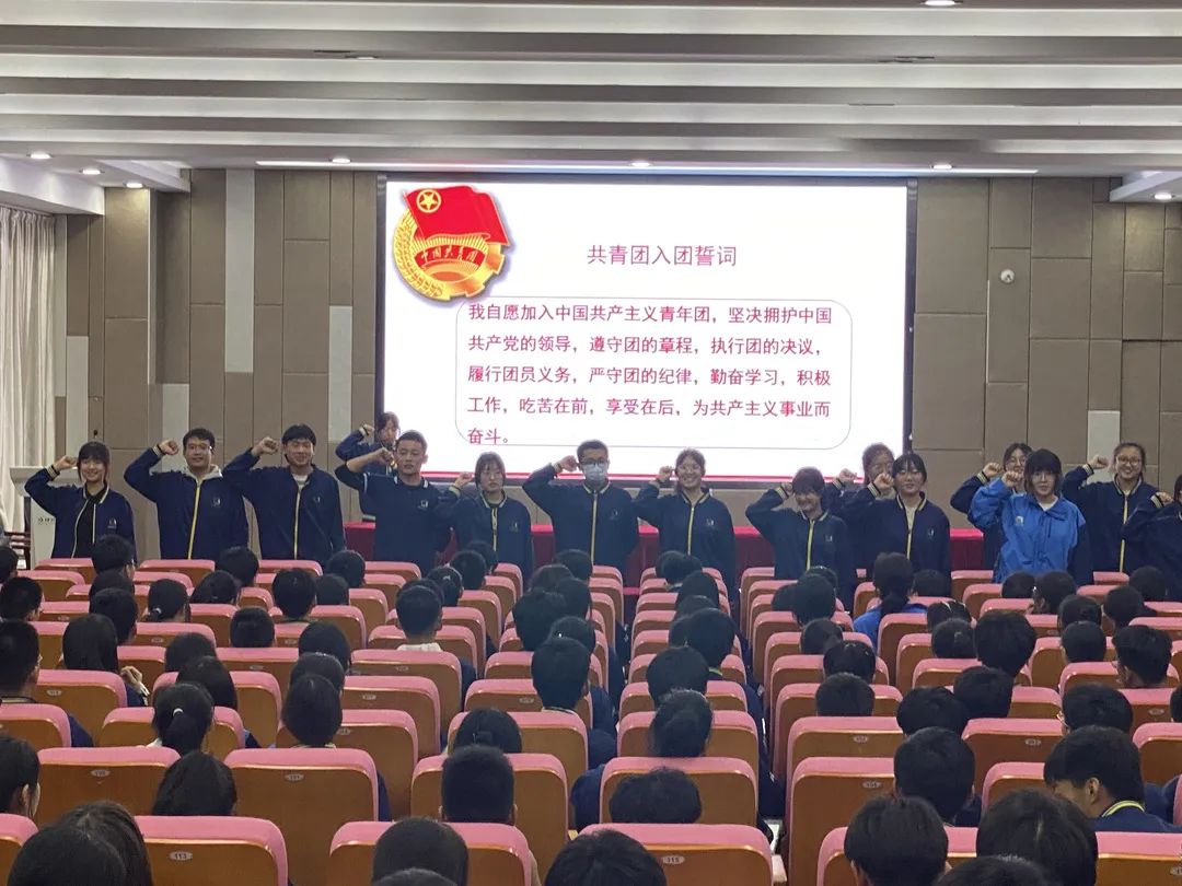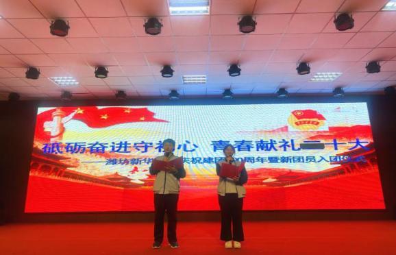 ▲5月10日,潍坊新华中学以“砥砺奋进守初心 青春献礼二十大”为主题,开展了庆祝中国共青团建团100周年暨新团员入团仪式。(潍坊新华中学供稿)