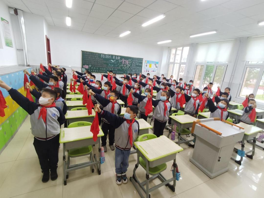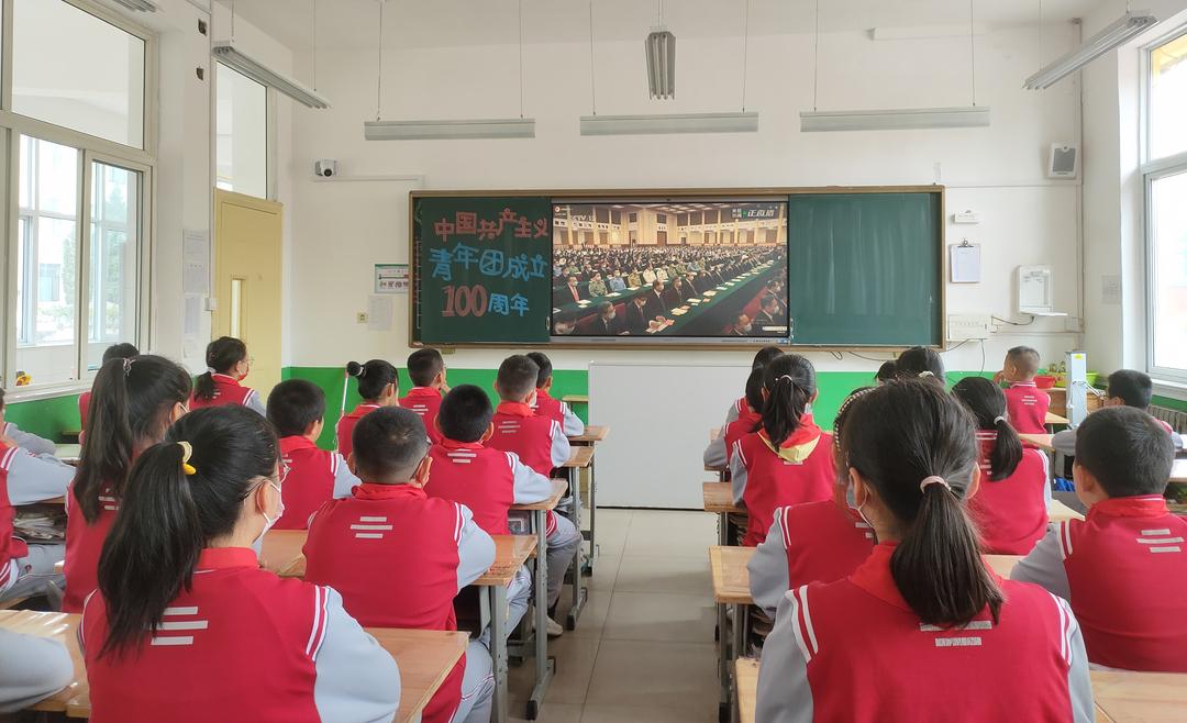 ▲5月10日,寒亭区实验小学组织全体队员学习观看庆祝中国共产主义青年团成立100周年大会。(寒亭区实验小学供稿)