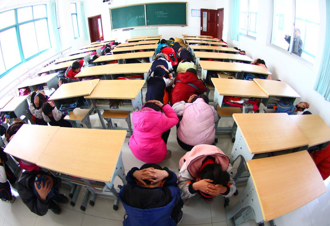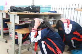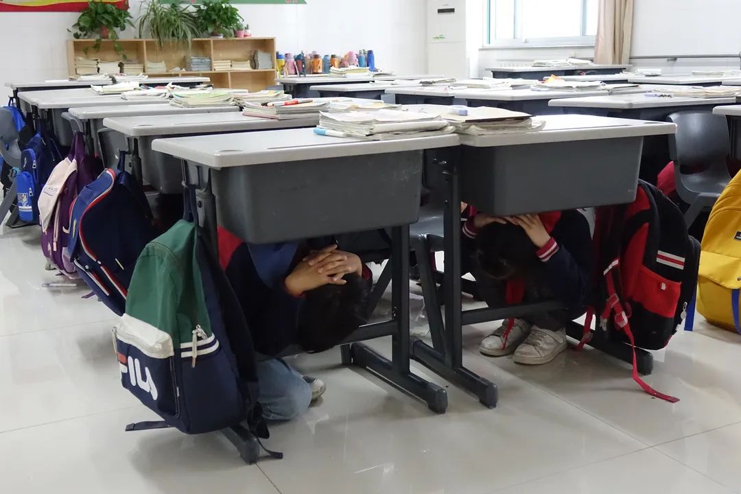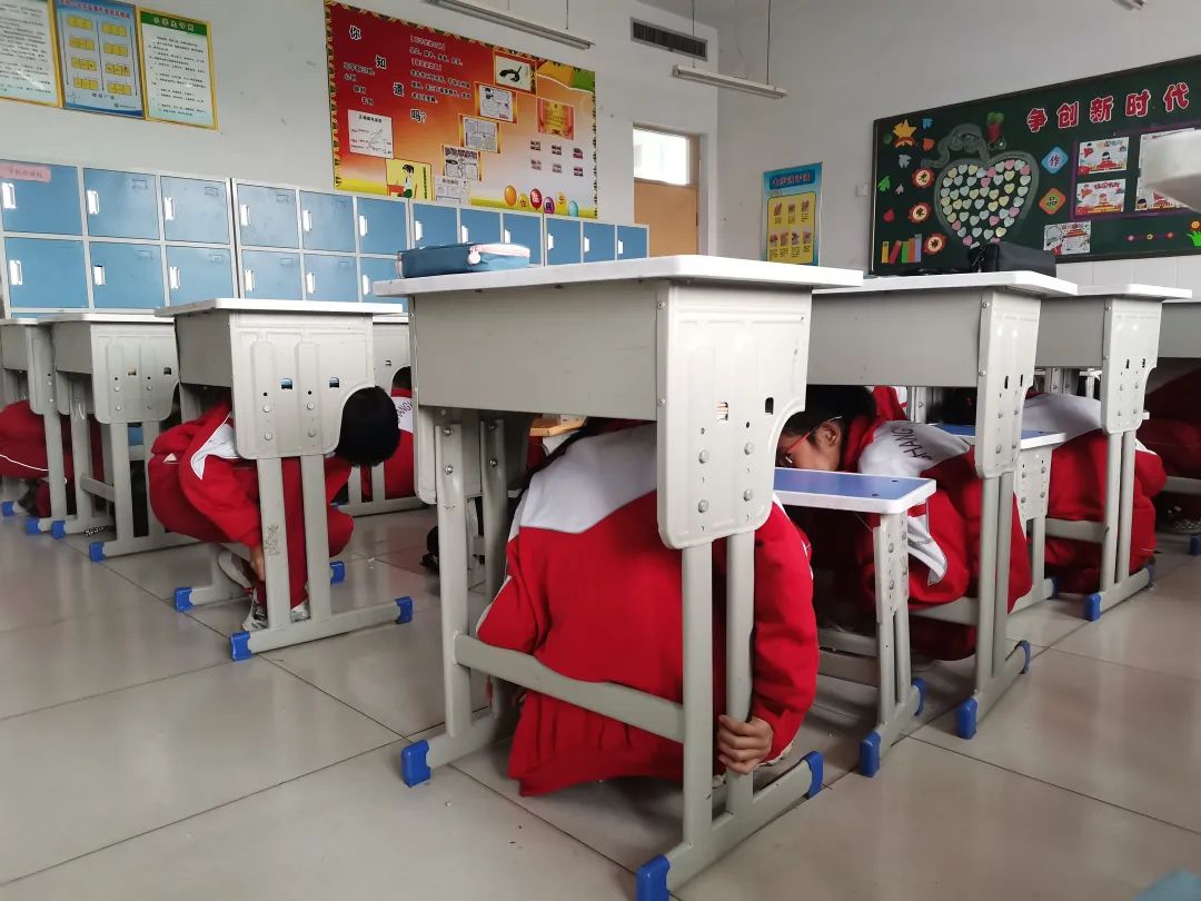 ▲5月11日,寿光市汇文学校举办了地震避险、疏散演练。(寿光市汇文学校供稿)