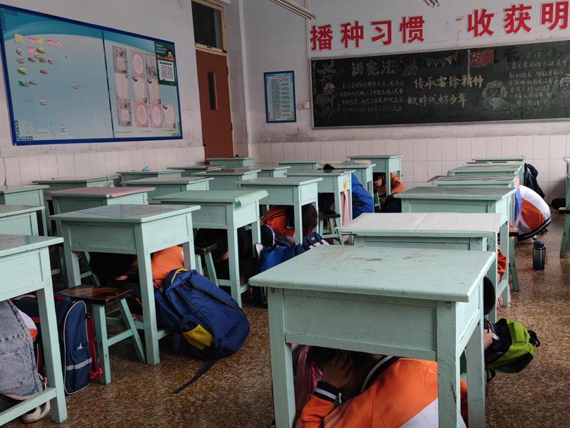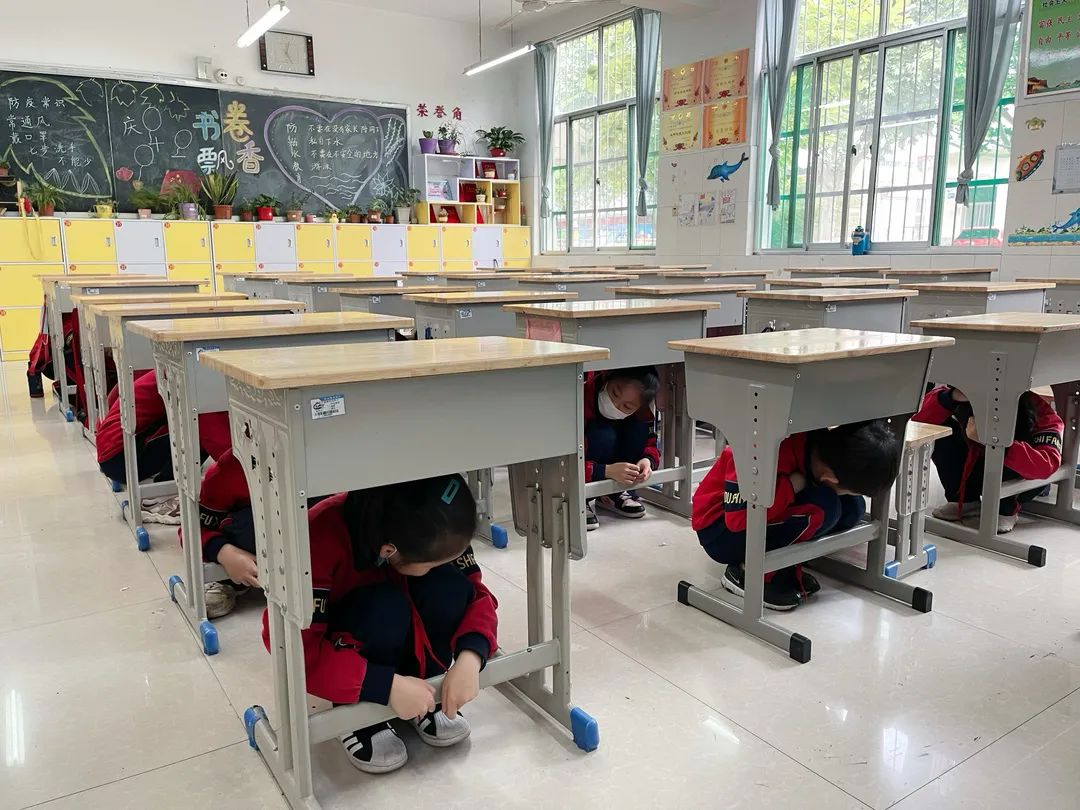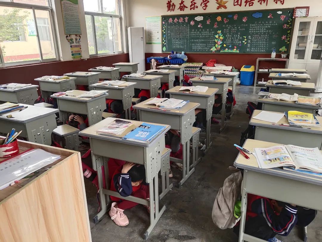▲5月9日,临朐县山旺镇桃花小学开展了防震演练。(临朐县山旺镇桃花小学供稿)