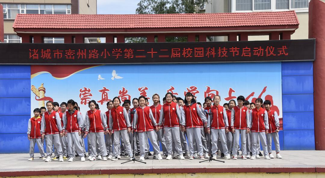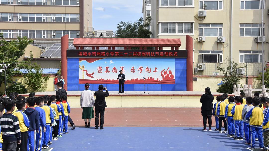 ▲5月9日,诸城市密州路小学举行了主题为“科技启智慧 一起向未来”的第22届校园科技节开幕仪式。(诸城市密州路小学供稿)