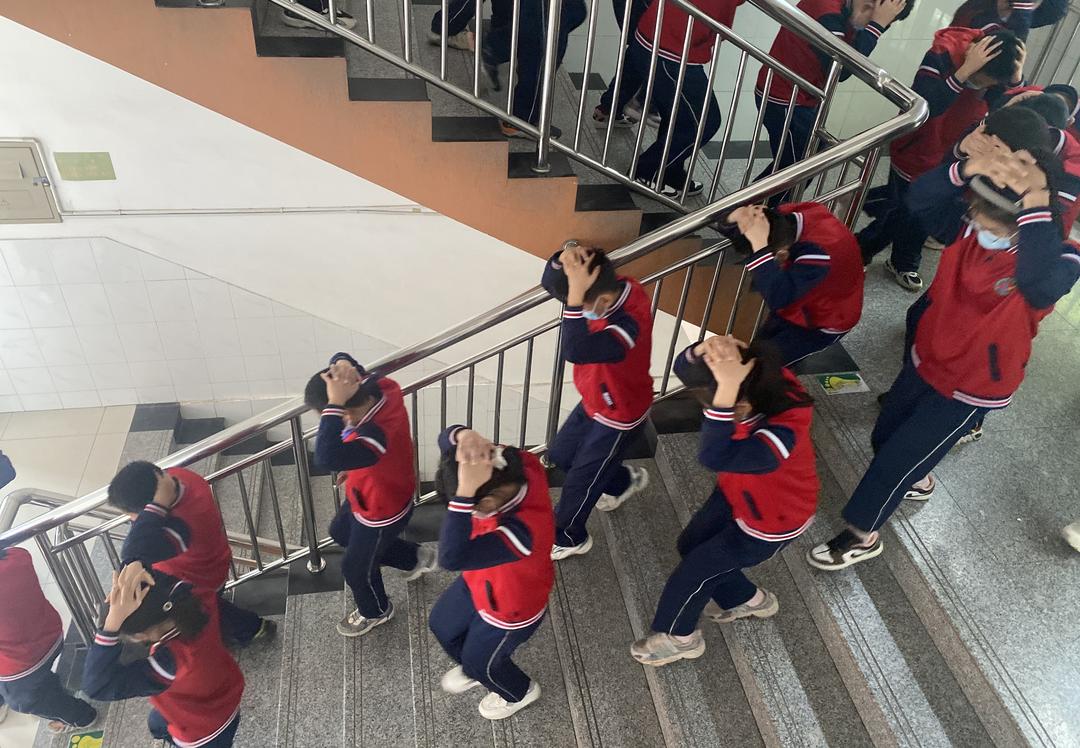 ▲5月12日,青州市东关回民初级中学开展了防震减灾应急疏散演练。(青州市东关回民初级中学供稿)