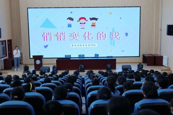 ▲近日,寿光市弥水未来学校开展了以“悄悄变化的我”为主题的高年级女生青春期健康讲座。(寿光市弥水未来学校供稿)
