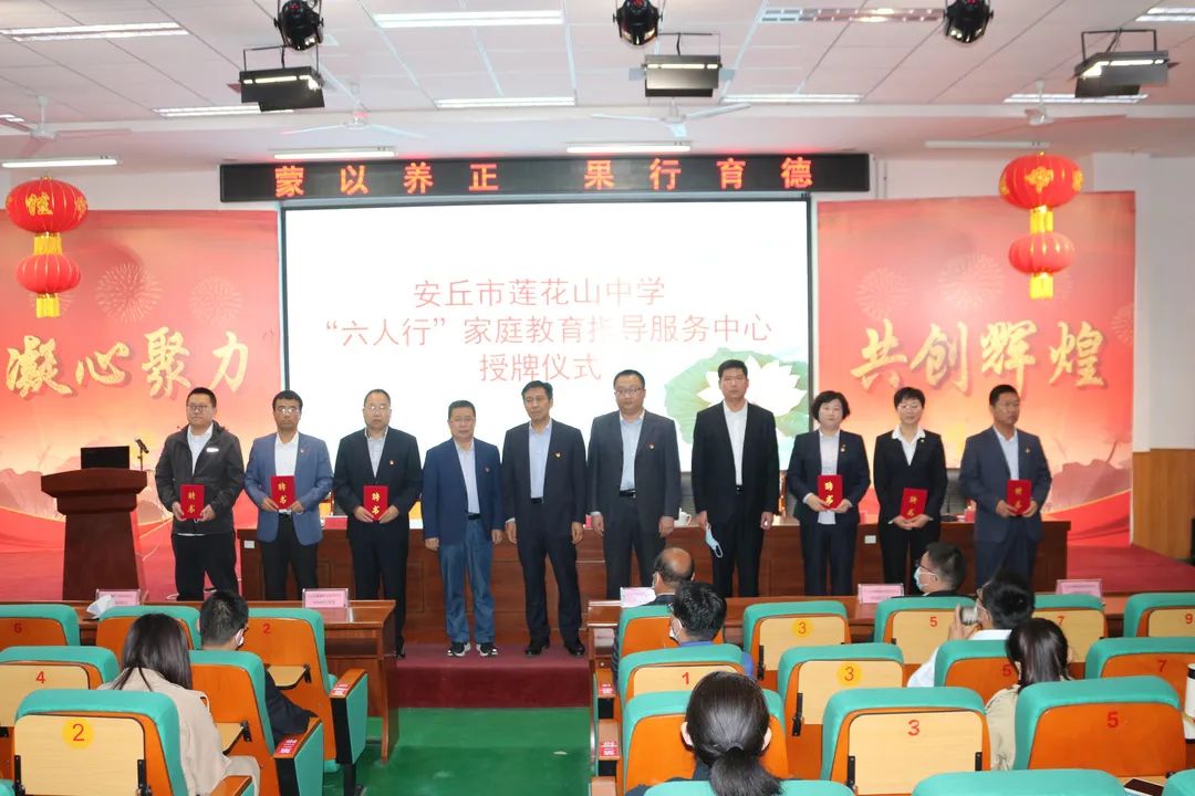 ▲5月10日,安丘市莲花山中学举办首届家庭教育文化节启动仪式,并成立“六人行”家庭教育服务指导中心。(安丘市莲花山中学供稿)