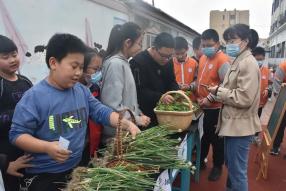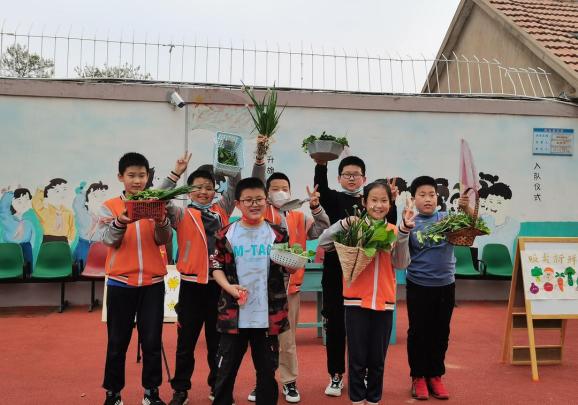 ▲5月11日,高密市第一实验小学开展了蔬菜售卖体验活动。(高密市第一实验小学供稿)